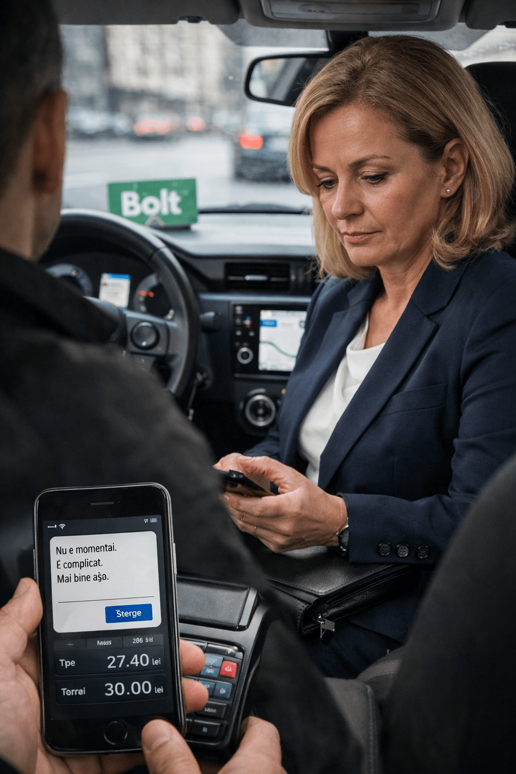 Niciun „bună ziua”. Doar o verificare rapidă a traseului, ca și cum ar valida o formulă.