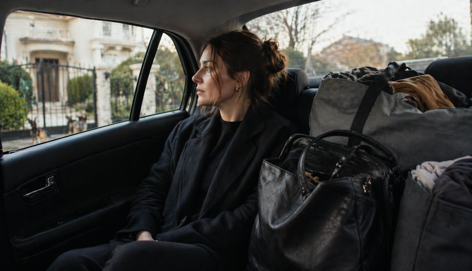 Avea trei genți mari. Nu a vrut să le punem in portbagaj. S-a urcat în spate cu ele și a oftat scurt.